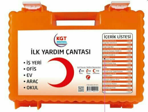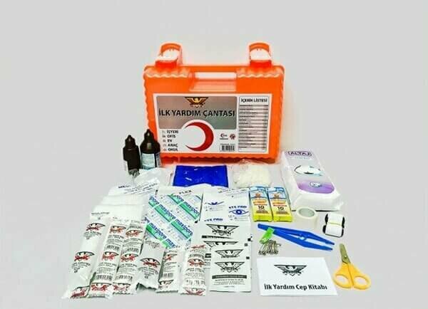 İçerik: Temel ilk yardım malzemeleri (sargı bezi, yara bandı, eldiven, makas vb.)